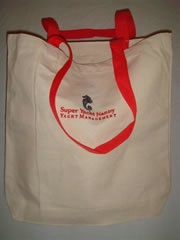 Shopping Bags/ Beige, 100% Cotton Canvas, Web Handles, Navy Red